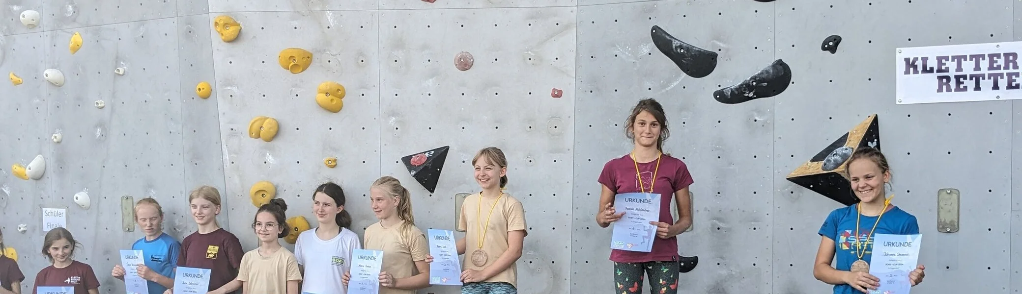 Wie in den ersten beiden Wettkämpfen zuvor mussten auch jetzt 2 Qualifikationstouren geklettert werden. Die erste Tour der Gruppe Schüler weiblich war einfach und fast alle der 12 Teilnehmerinnen erreichten den Zielgriff.